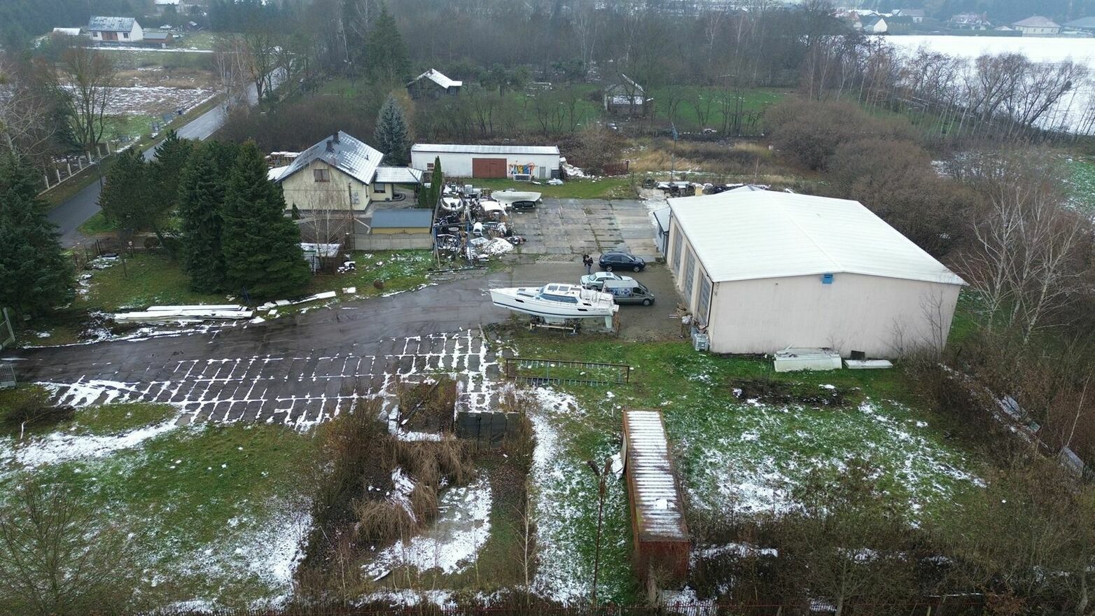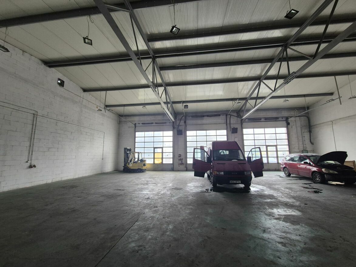 Większa hala o powierzchni 400m2 wyposażona jest w trzy bramy wjazdowe o wysokości 4m.
